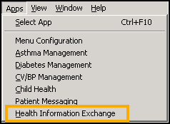 - Consultation Manager, with a patient selected, select Apps - Health Information Exchange: