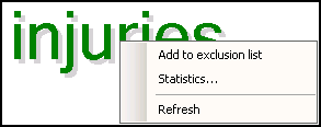 - Add to exclusion list - This adds the word to a list used to exclude common but non-significant words such as ‘and’, ‘the’, ‘symptom’.