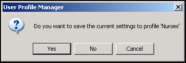 . - A User Profile Manager message displays stating, "Do you want to save the current settings to profile 'nnnnnn'" where nnnnnn is the name of the profile you are saving: