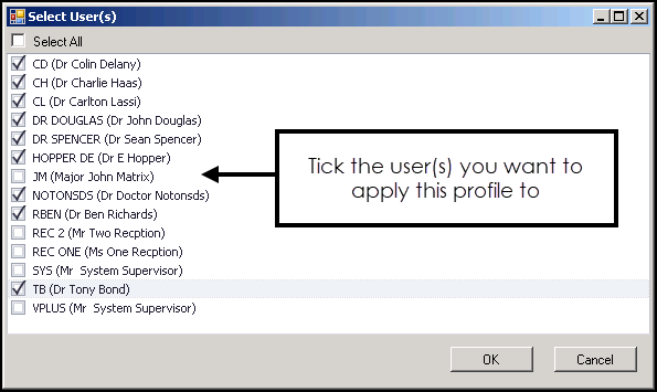 - Either tick Select All or tick the individual user(s) you want to apply this profile too: