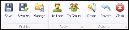 Individual settings can be set and loaded from the separate areas within User Profile Manager and then applied to users or groups independently from the rest of the settings in the profile. This enables you to fine tune individual users or groups of users as required.