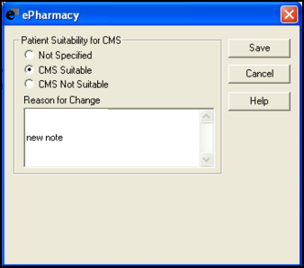 3. From the CMS section, you can see the patient’s current CMS(Serial Prescribing) suitability status. There are three possibilities: