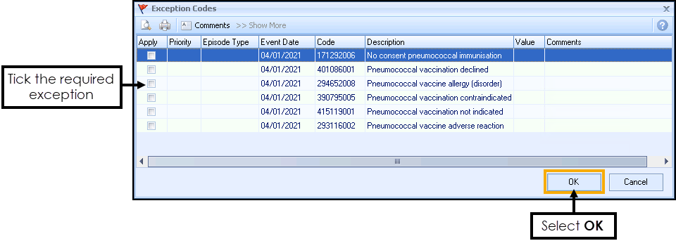 You can use Exception codes when you want to exclude a patient from QOF/QAIF. To enter an Exception code: