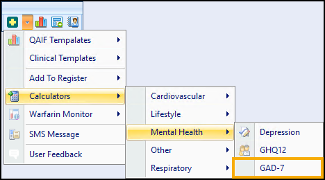 - From Consultation Manager, select Vision+ from the floating toolbar and select Calculators - Mental Health- GAD-7: