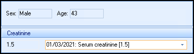The patient's sex, age and the latest recorded Creatinine level display:
