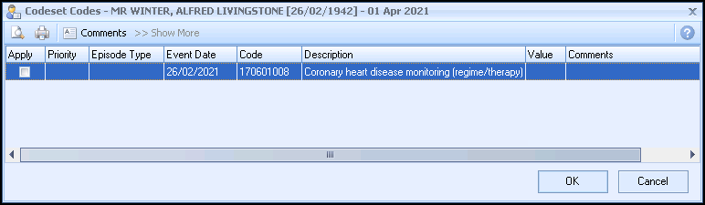 • Show More - Some clinical term lists are quite exhaustive which is why the list displays the most commonly used codes. Select Show More to expand the selection.