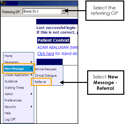 1. From Consultation Manager , select the patient to refer in the usual way, see Selecting a Patient for details if required.