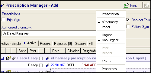 From the Prescription Manager screen, you can select to change a prescription type between Paper and ePharmacy, simply right click on the item to update and select as required: