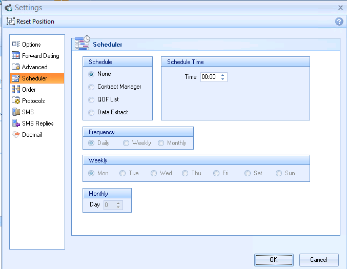 The Vision+ Scheduler is available to practices with their own server (LAN) practices. It enables you to run the Vision+ Practice Reports on a set date and/or time. The reports automatically run in the background and display the results on screen; this is particularly helpful for larger practices. In order for the reports to run you must be logged into Vision and not have a patient open in Consultation Manager.