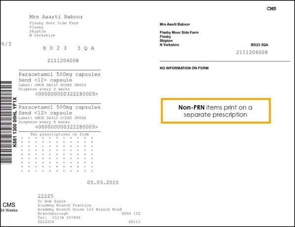 PRN Box - Remove the tick from the PRN box to print/send PRN drugs on the same prescription as non-PRN items