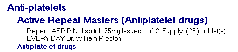 12. Prescribe the drug - If you want to prescribe the drug for this patient, either to create a new repeat master or print an acute prescription, point to the drug line, and double click.