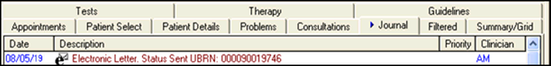 An RMD displays as an Electronic Letter on a patient record, you can select the entry to display the RMD at the bottom of the screen or right click on it and select Edit: