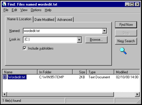 Select Start - Find - Files and Folders.