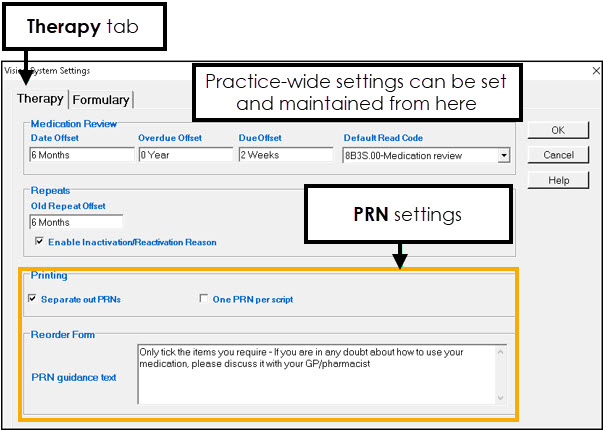 PRN and practice-wide therapy settings are now configured in Vision Management Tools: