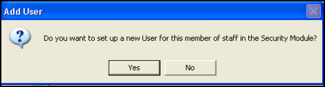 - You are asked: Do you want to set up a new User for this member of staff in the Security module?