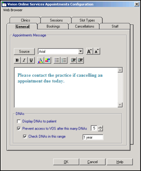 Note - To help prevent confusion surrounding who to contact if your patients have a problem, we ask that you add the following to your Appointment welcome message: 'In the case of a query regarding booking or cancelling an appointment please contact the surgery in the usual way'.