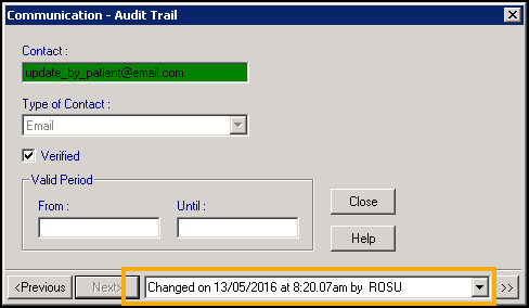 The audit trail shows the update has been made by ROSU, indicating a patient submitted amendment: