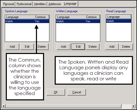 Note - For each language type, for example, spoken, written or read, multiple languages can be recorded, but you cannot add the same language to the same type multiple times.