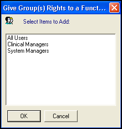 - Add Group(s) to Function - To select a group to be added to a function.
