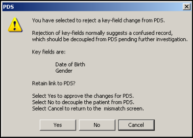 If a record is accessed where a key discrepancy exists the Please resolve the PDS/Vision mismatches screen displays.