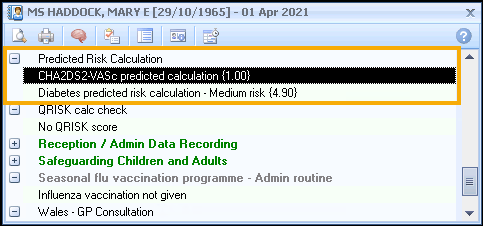 2. If a calculation can be performed, for example the patient has all the relevant data, you see the patient's risk in brackets: