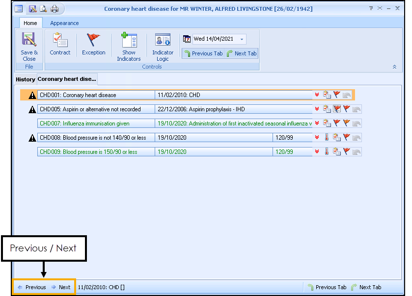 to move to the next or previous linked template. This is particularly helpful when a patient is on multiple registers and you need to move from one template to another: