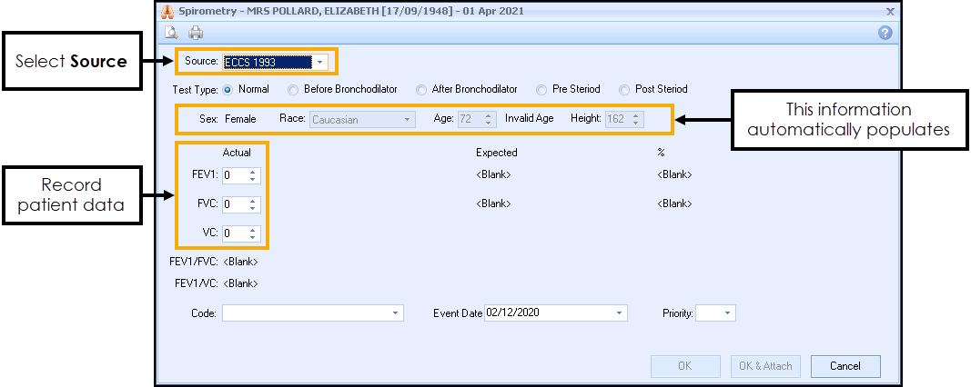 to save the result to the patient's record or OK & Attach