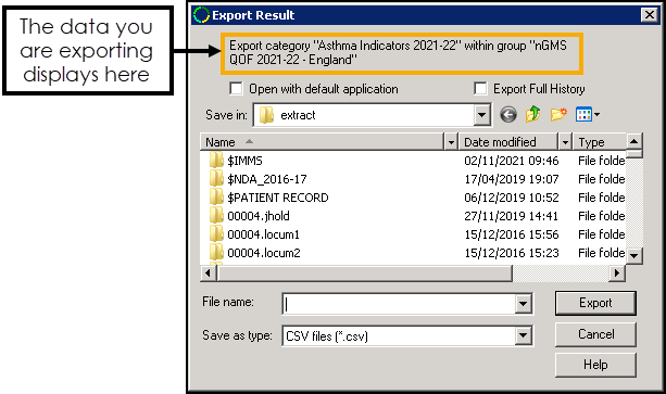 Enter a name for the export file in File name.