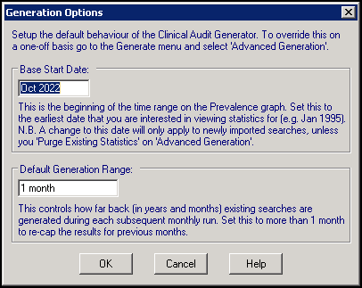 See Prevalence Tab for more details. - Set the Default Generation Range (Years/Months), this defaults to 1 month.
