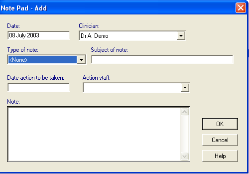 The Notepad allows free text notes and can record future actions to which you are alerted when due.