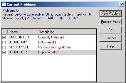 - Add New Problem - Click New Problem . The Problem - Add window opens, fill in the form and click OK. Then select the new problem from the list and click OK to close the Add Medication to Problem window.