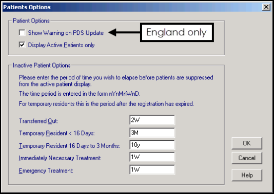 Show Warning on PDS Update - England only - Select to display a warning on PDS Update.