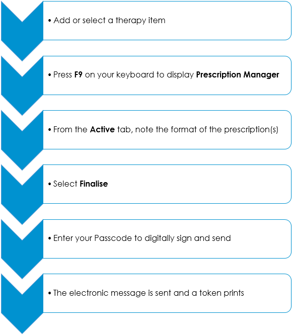 Issues do not print, but a printed token is produced which can be taken to any EPS enabled pharmacy in order to obtain the first and subsequent issues of medication.