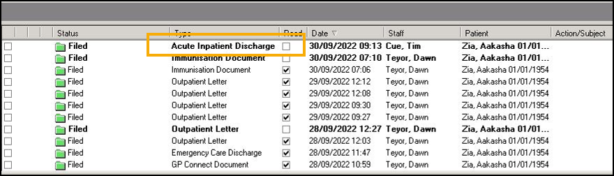 - Filed - Provided the message is assigned to a patient and allocated to a mailbox it automatically files in the patient record. If not, it can be filed, see Filing in the Mail Manager Help Centre for details..