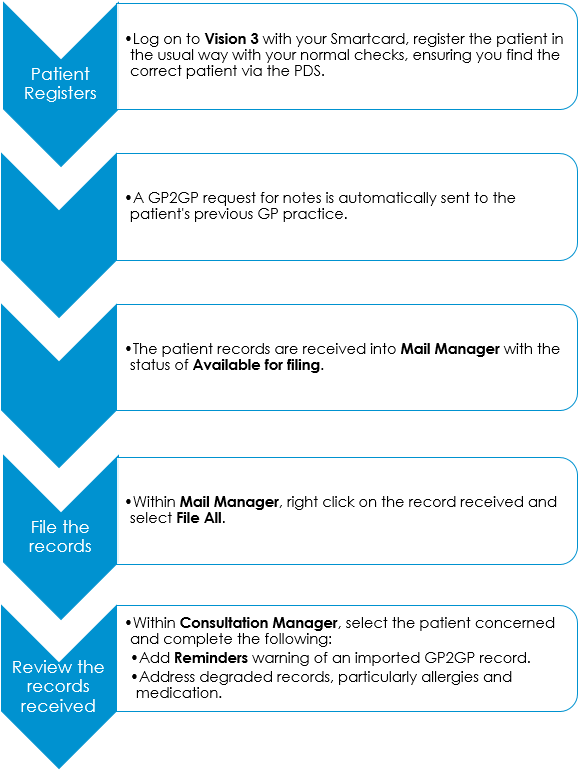 The following details the GP2GP process for a new patient: