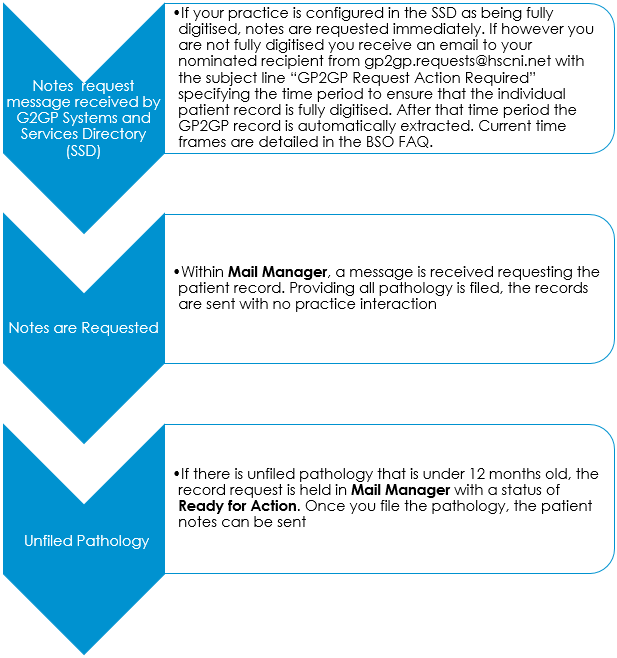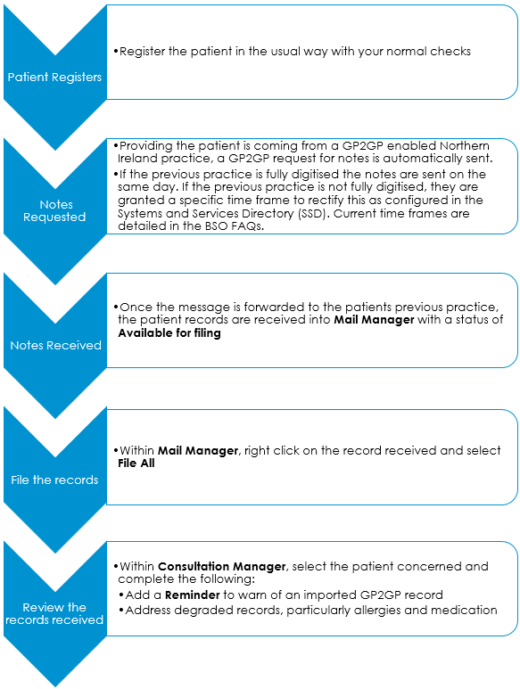 Note - Current time frames are detailed in the BSO FAQs.Important - Patients who have previously been registered at your practice do not qualify for a GP2GP transfer. - From Mail Manager