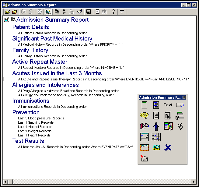 • Therapy Data - Select Patient Data , double click the yellow folder next to Therapy and then the red folder, Acute and Repeat Issue Therapy. To filter the records returned, in our example we are looking for issues in the last 3 months only, highlight the line under Selected Items and select Filter. The Criteria Select screen displays, double click Date prescribed, select After and enter 't-3m' into After, leave the tick in Inclusive. Now double click Sequence number of issues, select Less and enter '1' into From. Select OK and then OK again.
