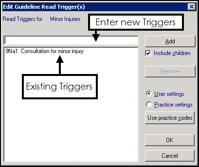 - To remove a trigger, from the Edit Guideline READ Trigger(s) screen, highlight the trigger no longer required and select Remove.