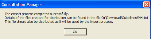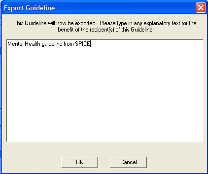 - The Export Guideline screen states that this guideline will now be exported, but you are given the opportunity to type in any explanatory text for the benefit of the recipient(s). The cursor is already within the free text window.
