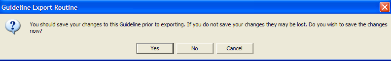 . - If you have been altering the guideline and have forgotten to save the changes, you will be reminded to do this first.