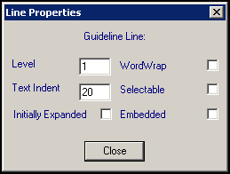 See Line Levels and Text Indents and Guidelines Properties - Word Wrap, Selectable, Initially Expanded, Embedded for full details.
