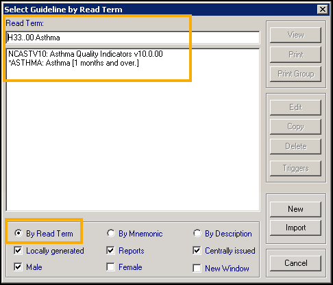 Select By Read Term and enter the clinical term you are interested in and press Enter on your keyboard: