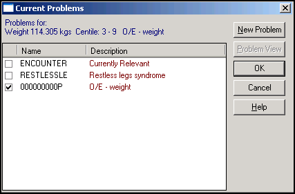 , select the patient required and start a consultation if required. - Right click on the entry(s) and select Problems.