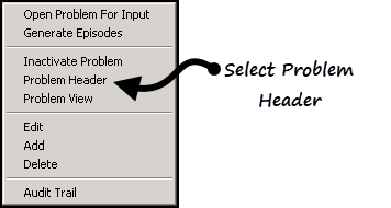 Problems are listed in alphabetical order of their short name. To view a problem's short name, right click on the problem line and select Problem Header.