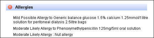 If No known allergies has been recorded, this is indicated under Allergies: