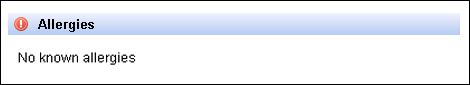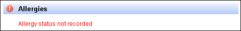 If no allergy status has been recorded for the patient, this is indicated under Allergies:
