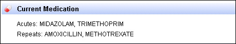 The following information displays in Current Medication in alphabetical order by drug name: