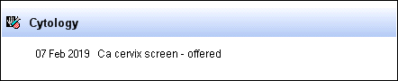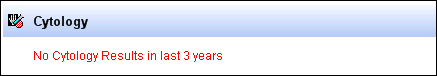 If the patient has no Cytology history the screen states No Cytology Results: