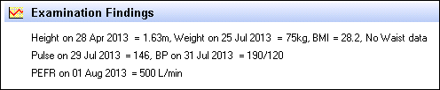 If the patient has no relevant data recorded, Examination Findings, displays: