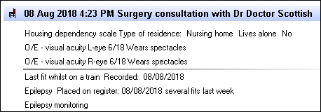 - When the patient was last seen for a face-to-face consultation with the full details of the consultation, see Consultation Types for details.